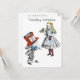 Esta diversão, fora da parede, é projetada para fãs do livro Alice's Adventures in Wonderland de 1865, de Lewis Carroll. Na frente do cartão estão ilustrações de Alice e do Mad Hatter com trims tartanas adicionadas às suas roupas - perfeito para um casamento escocês, ou noiva e noiva de origem escocesa! Alice está olhando para a garrafa com a poção mágica que a reduzirá a apenas 10 centímetros de altura para poder entrar no belo jardim. O Mad Hatter parece, bem, cada vez mais excêntrico! Se você é fã das Aventuras de Alice no País das Maravilhas, esta é a carta perfeita para deixar que familiares e amigos saibam a data do seu próximo casamento. Você pode personalizar facilmente o cartão para se adequar à ocasião festa de noivado, chá de panela, com seu encontro e o nome da noiva e do noivo. Basta pressionar o botão personalizar para alterar o texto. As ilustrações originais são de John Tenniel.