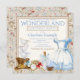 Alice no maravilhoso convite de aniversário com roupas bonito de aquarela, xícaras de chá, chapéu, relógio, chave, etc., em um fundo antigo. Este livro de histórias que eles Alice no convite de aniversário da Terra Maravilha é facilmente personalizado para o seu evento simplesmente adicionando seus detalhes.