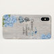 Alice no País das Maravilhas, uma adorável vintagem, de preto e branco, e seu vestido azul familiar aparece neste design alegre e nostálgico com a citação do livro, "Curiouser e curioso! gritou Alice", borboletas azuis vintage e lindas híbridos de safra azul e branca num fundo de madeira rústica macia e tonta para fazer uma adorável capa de telefone de iPhone com tema literário floral.