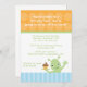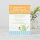 Este convite de aniversário de meninos 5x7 tem um topo de polkadot laranja com um fundo listrado azul. Há uma alienígena bonita balançando com uma mão e segurando um cupcake com a outra mão. Você pode personalizar facilmente as informações de sua parte. Cocoa Studio com