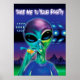 Esta foi uma das minhas imagens mais bem-sucedidas de sempre (em sua outra aparência mais famosa). Agora disponível no modo FESTA em uma grande variedade de produtos, a maioria dos quais será personalizável! O trabalho artístico original foi criado no Photoshop com um pouco de fotografia manipulada no fundo - tirada de uma viagem aos Estados Unidos. Esta imagem apareceu em um poster e depois, qualquer outro item e estimulou um conjunto de outras imagens Alienígenas. Cuidado para eles chegarem em breve.