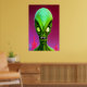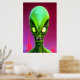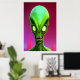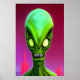 Um retrato de uma alienígena verde com uma cabeça grande e olhos verdes. Esta é uma arte gerada por IA.