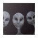 Um desenho a lápis colorido de três Alienígenas de Cinza de ETs contra um céu preto estrelado adorna este azulejo decorativo!