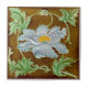 De um azulejo antigo de Henry Richards de 1900. Uma grande flor azul clara com centro amarelo é o ponto focal em meio a um caule de folhas sensualmente curvado que a circunda. Muito eficaz contra o fundo castanho de cacau. Escolha azulejos de 4,5 polegadas ou 6 polegadas, assim como outros itens.