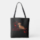 This “All I Need Is Love and My Dachshund” tote bag is designed to pop beautifully on a black background, with vibrant red lettering, playful hearts, and paw-print accents that stand out at a glance.