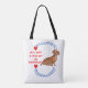 Featuring an adorable dachshund design with bold red lettering, hearts, and paw-print accents, this tote is ideal for: