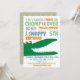 Estes convites são perfeitos para qualquer um que planeja um evento divertido. O design apresenta um design de padrão de canal na parte traseira e um design de Alligador legal na parte frontal e é concluído com texto editável correspondente. O design pode ser personalizado para se adequar ao seu evento especial e será o anúncio perfeito para aniversários e chás de fraldas. Parte da nossa coleção "Alligator Chomp, Chevron Festa de aniversário".
