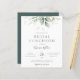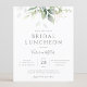 Convite de almoço de noivado com eucalipto aquarela e folhas douradas.