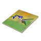 Este maravilhoso azulejo apresenta um beija-flor delicado alimentando-se de uma flor azul brilhante. Os beija-flores são os únicos pássaros que podem voar tanto para a frente como para trás, assim como para pairar no ar do médio, voar lateralmente e até de cabeça para baixo.