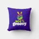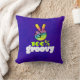 Um travesseiro legal com uma design de tipografia contendo um sinal de paz arco-íris com dedos erguidos em um V. Text diz que 100% de ranhura em uma fonte estranha. Design de tema hippie psicodélico. Colocado sobre um fundo cor púrpura ácido-escuro.