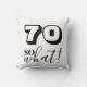 70 Que Engraçado Citação de Travesseiro decorativo de Aniversário Preto e Branco. Moderna, inspiradora e engraçada citação 70 Então e a tipografia da tendência negra. Excelente para ele que comemora o 70º aniversário e tem senso de humor. Você pode mudar o número de idade.