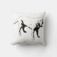 Um desenho expressivo ao estilo tinta de um cão orgulhosamente segurando uma bola. A pose brincalhona adiciona calor e humor, transformando um simples travesseiro numa explosão de alegria canina.