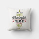 Travesseiro decorativo branco festivo feito sob encomenda com um design festivo na moda elegante da tipografia: É a época a mais maravilhosa do ano no vintage, em pias batismais retros do estilo e em cores. Design moderno com um olhar retro do vintage com a árvore de Natal bonito, os cervos/veados e os sinos do ouro em cores pretas, vermelhas, verdes e do ouro em um fundo branco. Na parte traseira é um design diferente do feriado da tipografia: Podem seu Natal ser brilhante e a feliz no vintage, em pias batismais retros do estilo e em cores. Design moderno com um olhar retro do vintage com as listras bonitos do bastão de sinos de Natal, de azevinho e de doces em cores pretas, vermelhas e verdes. Chique, travesseiro sofisticado, elegante, à moda, colorido, bonito que faria um presente bonito do Xmas do divertimento ou como a decoração sazonal para sua casa.