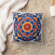 This decorative throw pillow features a vibrant, hand-painted style mandala inspired by traditional Mediterranean ceramic tiles. The design showcases an intricate symmetrical floral pattern in rich cobalt blue, burnt orange, and earthy terracotta tones. Perfect for adding a pop of cultural elegance to a living room sofa, entryway bench, or patio seating.