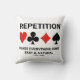 Mostre seu estilo de ponte sonora com este travesseiro decorativo de atitude de ponte/ponte duplicada com os quatro naipes de cartas, juntamente com o ditado "Repetição Torna tudo fácil e natural". Faça com que outros façam uma dupla tomada na mesa da ponte sobre como você pode se lembrar e como você pode jogar bem com esta ponte memorável dizendo travesseiro decorativo!