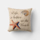 Areia e conchas A vida é muito melhor no travesseiro de algodão na praia.
