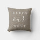 A fazenda moderna Abençoa O Nosso travesseiro decorativo Ninho. Observe que a sutil textura de fundo da burlap faz parte do design impresso e o produto não é feito de tecido real. Clique no botão Personalizar para adicionar o seu próprio texto e selecione em todos os nossos estilos de travesseiro para criar o seu único e único design!