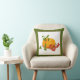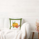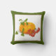 Morangos de abóbora, folhas caem em cores travesseiro decorativo de Ação de Graças. Apresenta uma abóbora amarela e laranja com folhas e bagas vermelhas. Há uma fronteira verde em volta dela.