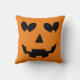 Almofada Abóbora de coração feliz laranja e preto no Hallow