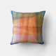 O desenho abstrato original deste Travesseiro decorativo de 16" foi feito a partir de uma fotografia original por ZoeSPEAK. Sugere uma visão, através de uma janela, de uma paisagem. A borda está em tons de azul, e o interior está em tons de laranja e verde com realces amarelo pálido e rosa. Há bandas lineares com buracos perfurados neles cruzando a design.