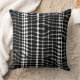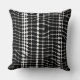 Um desenho abstrato em preto e branco compunha faixas verticais irregulares com linhas onduladas horizontais.