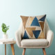 Almofada abstrato de cobre, triângulo azul e dourado com mu