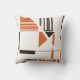 Em destaque está um abstrato, design geométrico em formas e linhas de cor laranja-azeda com marrom-escuro (e elementos pretos) sobre fundo esbranquiçado num olhar contemporâneo, embora inspirado pelos estilos Moderno e Sudoeste do século Médio. Este é um olhar ousado e minimalista nas linhas simples e cores contrastantes. Há também um pouco a aparência da arte tribal. O design global projeta uma qualidade limpa, sofisticada e polida para a área viva, quarto, espaço de trabalho, terraço ou decor de pátio. Isto também oferece um sentimento de calor, uma ambição relaxada e pacífica para o seu espaço pessoal, um lugar para recuar e contemplar enquanto estiver longe do movimentado mundo do dia a dia. Há muito potencial decorativo nesta peça de sotaque, que se ajustado com muitos estilos, de retrô/safra a rancho rústico a loft urbano moderno ou alta. .