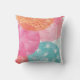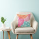 Este bonito travesseiro de abstrato de aquarela, com saltos e triângulos cor-de-rosa, azuis e laranja, faz uma adorável adição ao quarto das crianças.