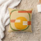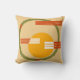 Este travesseiro decorativo tem um desenho abstrato moderno do século médio de um círculo dourado dentro a um círculo verde com listras laranja e branca.