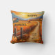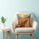 Travesseiro artístico colorido com uma paisagem rural de outono com uma fazenda e abóboras ao pôr do sol. Excelente de criar uma atmosfera de Ação de Graças, bem como um estilo de boas-vindas caloroso durante o outono.