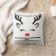 Acredite em Travesseiro decorativo de renas de Natal bonitinho. Uma imagem moderna engraçada e fofa de uma cabeça de rena com luzes de Natal. Com as luzes de Natal penduradas nas galhadas. Fundo branco. Personalize adicionando sua mensagem de Natal, nome da família.