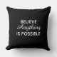 Este design apresenta um fundo texturizado de veludo preto junto com o texto "Acredite que tudo é possível". Este travesseiro decorativo personalizado faz um presente inspirador excelente. Disponível em três tamanhos.