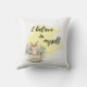Coelho coelho adorável sentado numa equipe com flores espalhando positividade com este travesseiro de afirmação "Eu acredito em mim mesmo". Excelente para o quarto do seu filho, sala de jogos ou onde quer que passem o dia.