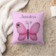Este travesseiro adicionará um toque original a todo o quarto das meninas. Características de design uma luz - pique a terra traseira com uma borboleta cor-de-rosa na parte dianteira que tem corações em sua asa, e todo o texto da sua escolha! Adicione seu nome ou toda a frase curta. Na parte de trás deste travesseiro é um coração com umas citações inspiradores, "no exato momento em que a lagarta pensou que seu mundo a terminava… se transformou uma borboleta."