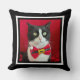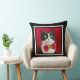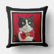 This adorable tuxedo cat is wearing a red and white bow tie. This cute photo is edged in black and white to make the tux look very classy. This will make the perfect pillow for the Christmas holidays. Copyright Peaches the Tuxedo Cat