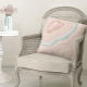 Banda de cor ondulada em tons de tons de azul rosa e azul-lacre macio com um centro de cristal brilhando formam um sotaque geode/agate no canto deste travesseiro decorativo decorativo. Um abstrato que lembra a pedra veiculada com brilho em tons de rosa de ouro fornece um fundo de coordenação. Procure ID647 para ver todas as peças de coordenação neste conjunto.