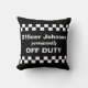 Presente de aposentadoria policial divertida. Design preto e branco com as palavras OFF DUTY e tiras de tabuleiro de xadrez. Relaxe, levante os pés, você está fora do dever permanentemente!