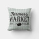 Casa de fazenda/decoração do país com estêncil preto "Mercado de fazendeiros - Localmente Cultivado" sobre cinzas pastel e fundo branco de gingham