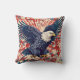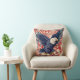 Este travesseiro decorativo mostra uma ilustração de uma águia americana com asas espalhadas. O padrão é uma abstração de Estrelas e Stripes.