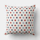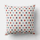 Travesseiro decorativo com grandes bolinhas em cores náuticas de vermelho e azul em branco.
