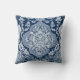 Esta almofada apresenta um padrão característico de efeito de renda branco, intrincado, em relação a um fundo azul rico. A design é simétrica, com um medalhão central cercado por delicados motivos florais semelhantes a rendas. O elegante e eterno, que o torna uma adição perfeita a qualquer sala de estar ou decoração de quarto, acrescentando um toque de sofisticação e estilo.
