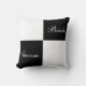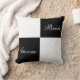 Travesseiro decorativo mostrado em blocos de cor preto/branco com texto Bride/Groom. Personalize este item ou comprar como está.