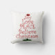 Belo Travesseiro de Férias tem Todas as Palavras para a Estação; Joy, Love, Peace, Acredite e Natal na Forma de uma Árvore de Natal. Que Excelente Hostess Gift!