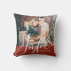 Este elegante travesseiro de Natal diz "alegria" na caligrafia moderna de escrituras brancas. Adicione sua foto favorita da família e seu nome. A parte inferior do design, e a parte posterior do travesseiro, é uma cor vermelha festiva.