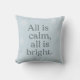 Featuring the serene quote “All is calm, all is bright” in soft gray tones on a pale blue background, this design captures the essence of a quiet Scandinavian winter morning.