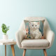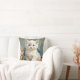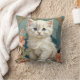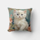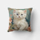 Travesseiro com um gato branco no estilo de Alphonse Mucha! Este gatinho liso e de olhos azuis posou com flores cor-de-rosa e cobertores azuis. Um presente fabuloso para amantes de gatos e colecionadores de Art Nouveau!