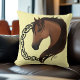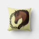 Um perfil do lado do cavalo marrom com nó celta tribal funciona em círculo num pano de fundo amarelo