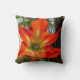 This Throw Pillow showcases the intense beauty of a flower, an Amaryllis blooming in the garden. The original photograph by ZoeSPEAK is a closeup, and the details of the flower, the shapes and color changes from the center outward are amazing. From soft shades of green blending into yellow, the bloom finishes with five outstretched petals in deep, rich oranges against a background of green leaves and muted brown wood.