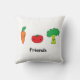 Travesseiro decorativo vegetal feliz do poliéster dos amigos. O travesseiro decorativo customizável tem amigos do vegetal de uma cenoura bonito, do tomate e dos brócolos.