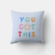Eu te amo na lua e de volta na frente deste travesseiro e você tem isso na parte de trás do travesseiro contra um fundo azul. Palavras inspiradoras para a família e os amigos!